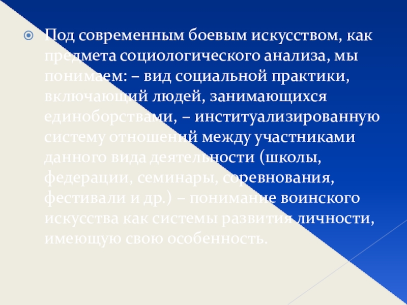 Под современным боевым искусством, как предмета социологического анализа, мы понимаем: