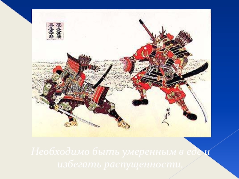Слайд 30Необходимо быть умеренным в еде и избегать распущенности.