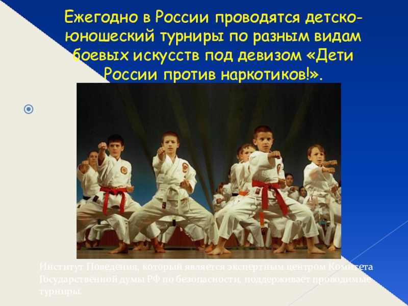 Слайд 24Ежегодно в России проводятся детско-юношеский турниры по разным видам боевых искусств