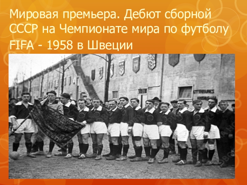 Слайд 4Мировая премьера. Дебют сборной СССР на Чемпионате мира по футболу FIFA