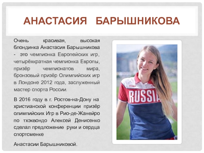 Слайд 17АНАСТАСИЯ БАРЫШНИКОВА