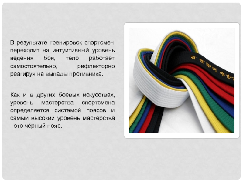 В результате тренировок спортсмен переходит на интуитивный уровень ведения боя, тело