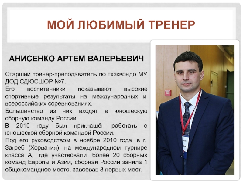 Старший тренер-преподаватель по тхэквондо МУ ДОД