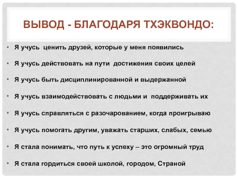 Слайд 18ВЫВОД - БЛАГОДАРЯ ТХЭКВОНДО: