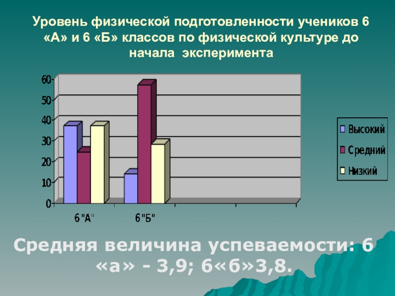 Средняя величина успеваемости: 6«а» - 3,9; 6«б»3,8.