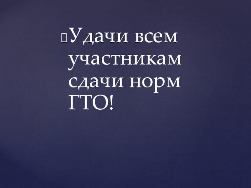 Слайд 32Удачи всем участникам сдачи норм ГТО!