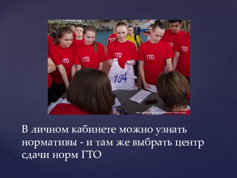 В личном кабинете можно узнать нормативы - и там же выбрать центр сдачи норм ГТО