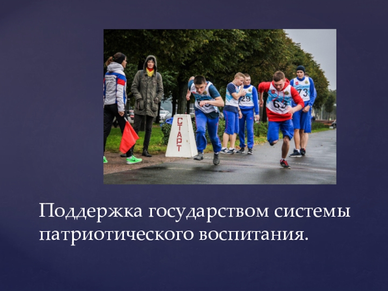 Слайд 11Поддержка государством системы патриотического воспитания.
