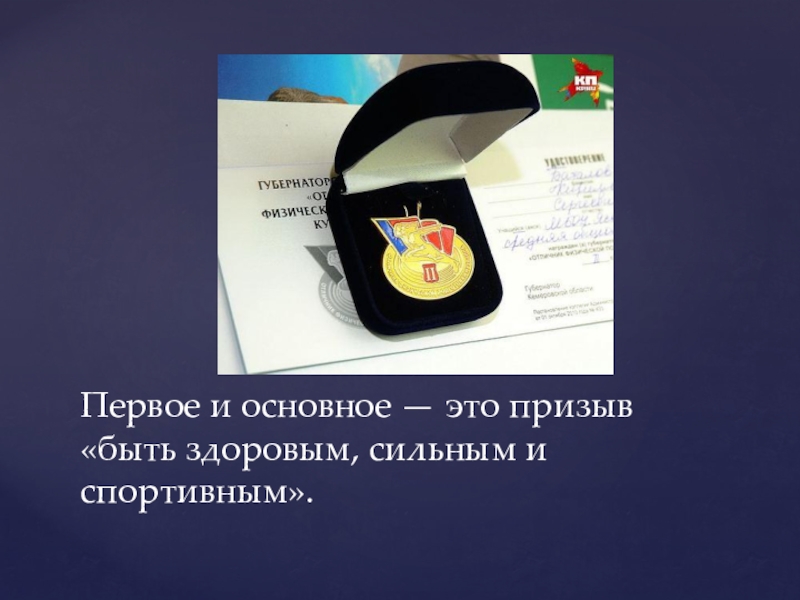 Слайд 10Первое и основное — это призыв «быть здоровым, сильным и спортивным».