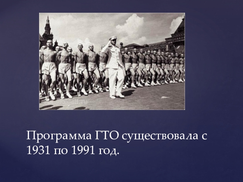 Слайд 8 Программа ГТО существовала с 1931 по 1991 год.
