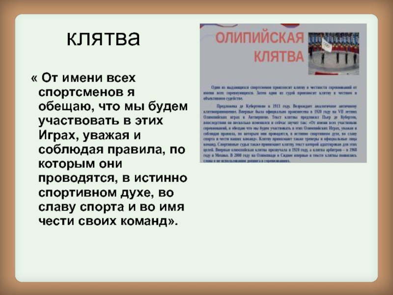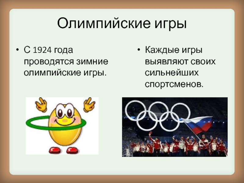 людей стремились попасть на эти зрелища. Зрители сидели на холмах и криками подбадривали соревнующихся. На Олимпийские игры приезжали поэты и писатели. После большого перерыва Олимпийские игры возобновились в 1896 году в Греции. В их возрождении большую роль сыграл выдающийся французский общественный деятель барон Пьер де Кубертен.