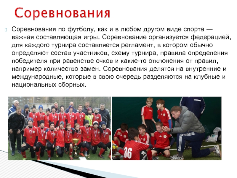 Слайд 8Соревнования по футболу, как и в любом другом виде спорта — важная
