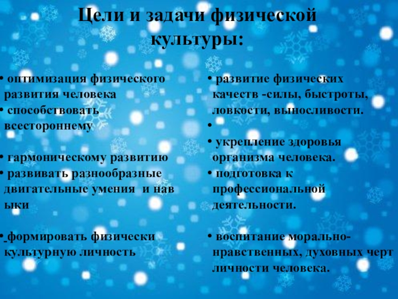 развитие физических качеств -силы, быстроты, ловкости, выносливости.