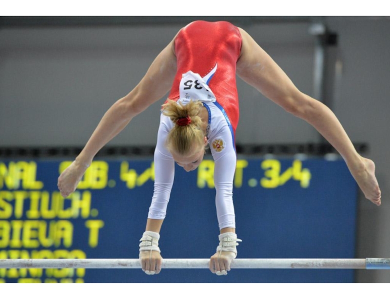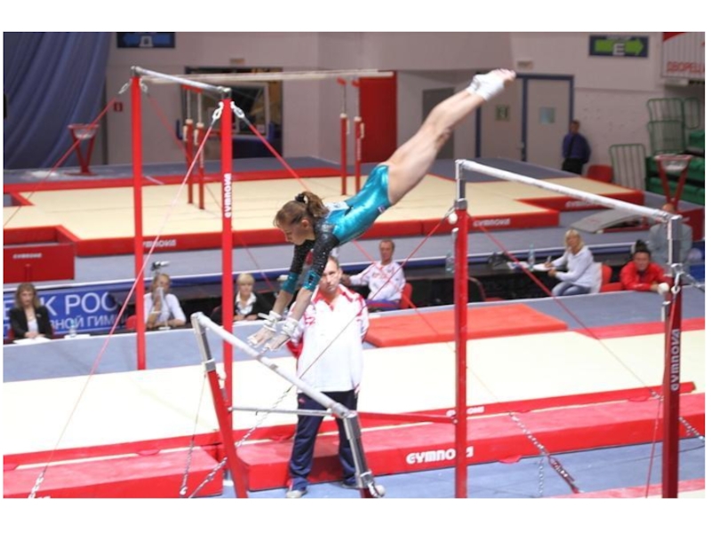 Слайд 9Женская спортивная гимнастика Разновысокие брусья