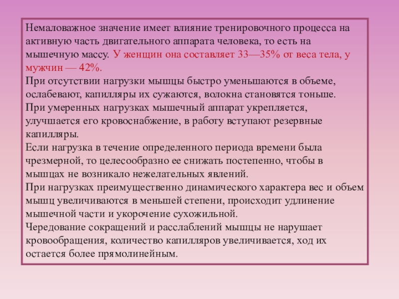 человека, то есть на мышечную массу. У женщин она составляет 33—35% от веса тела, у мужчин — 42%.