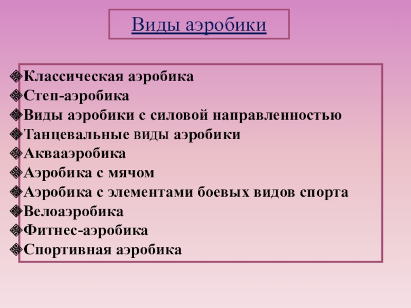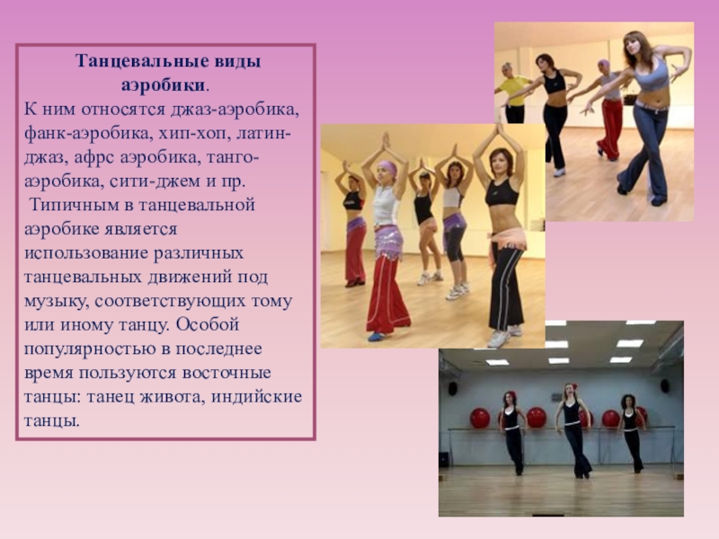афрс аэробика, танго-аэробика, сити-джем и пр.
