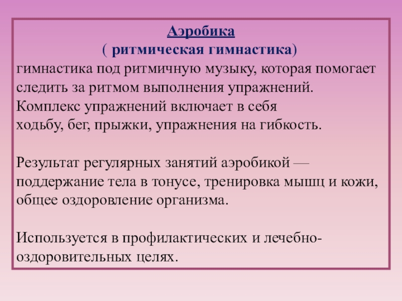 гимнастика под ритмичную музыку, которая помогает следить за ритмом выполнения упражнений.