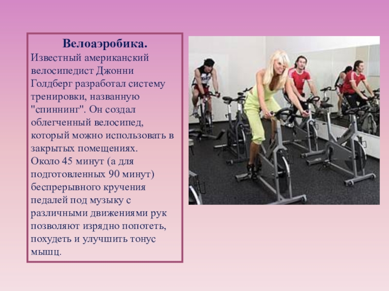 Известный американский велосипедист Джонни Голдберг разработал систему тренировки, названную "спиннинг".