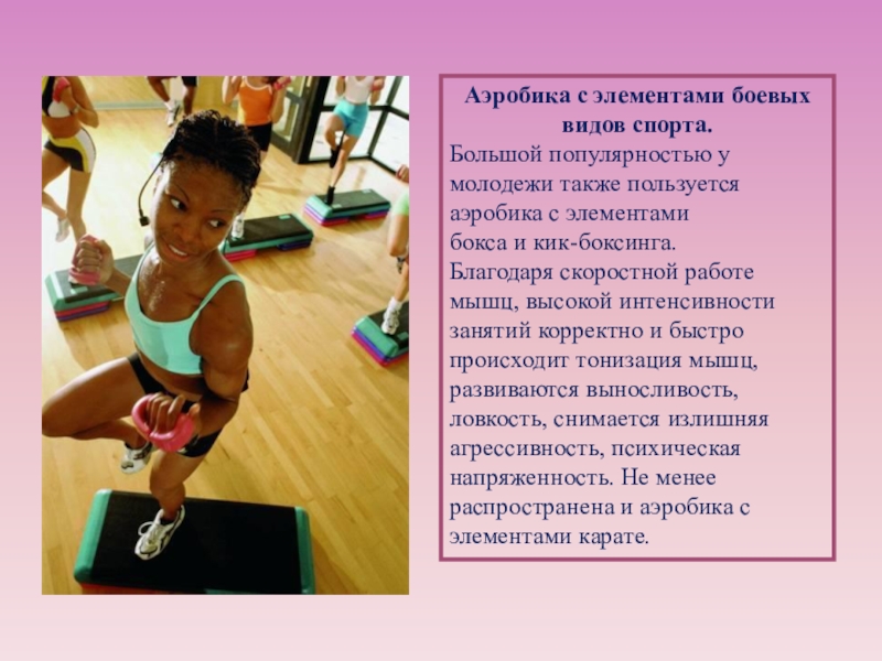 Слайд 12Аэробика с элементами боевых видов спорта.