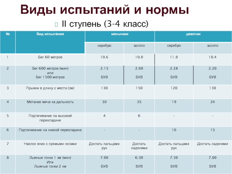 Нормативы 2 - 4 класс: