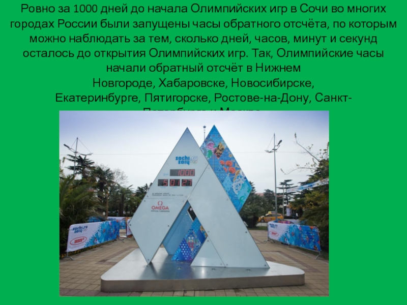 Слайд 15Ровно за 1000 дней до начала Олимпийских игр в Сочи во