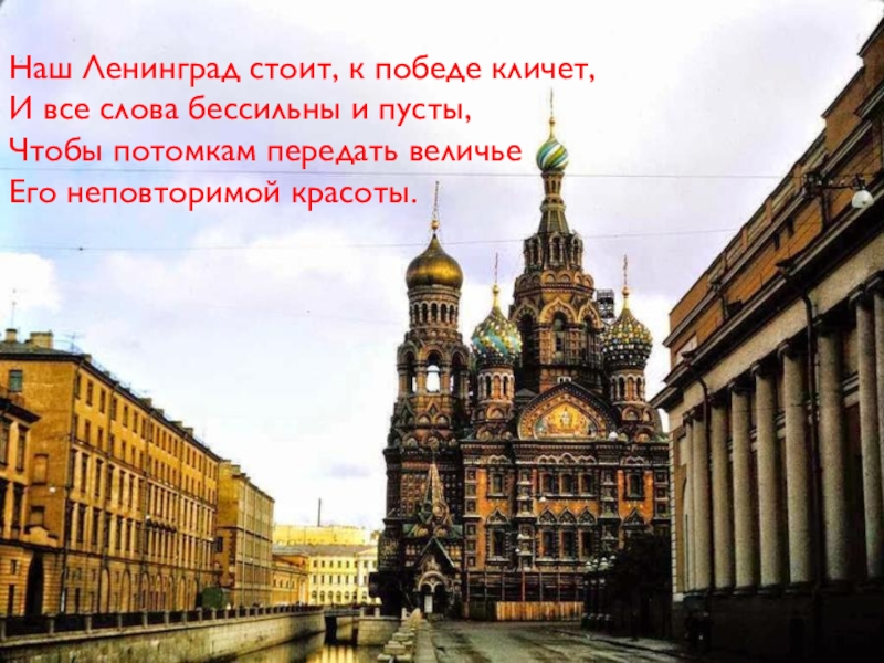Слайд 10Наш Ленинград стоит, к победе кличет, И все слова бессильны и пусты, Чтобы