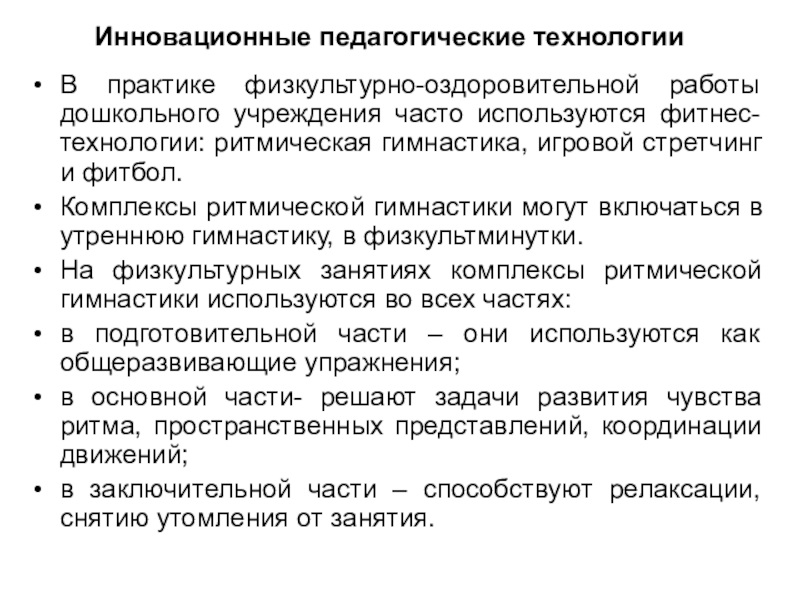 В практике физкультурно-оздоровительной работы дошкольного учреждения часто используются фитнес-технологии: