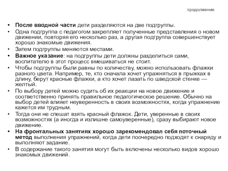 Когда движение будет «поставлено» у всех детей, форма организации обучения меняется.