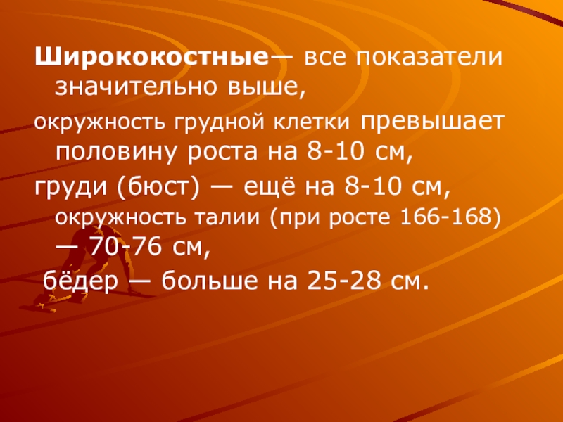 Слайд 13Ширококостные— все показатели значительно выше,