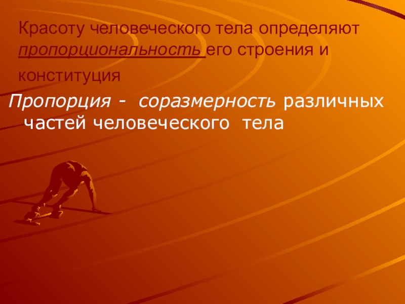 Слайд 4Красоту человеческого тела определяют пропорциональность его строения и конституция