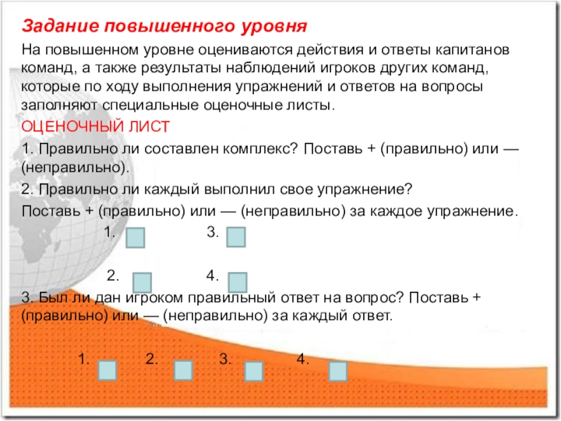 На повышенном уровне оцениваются действия и ответы капитанов команд,