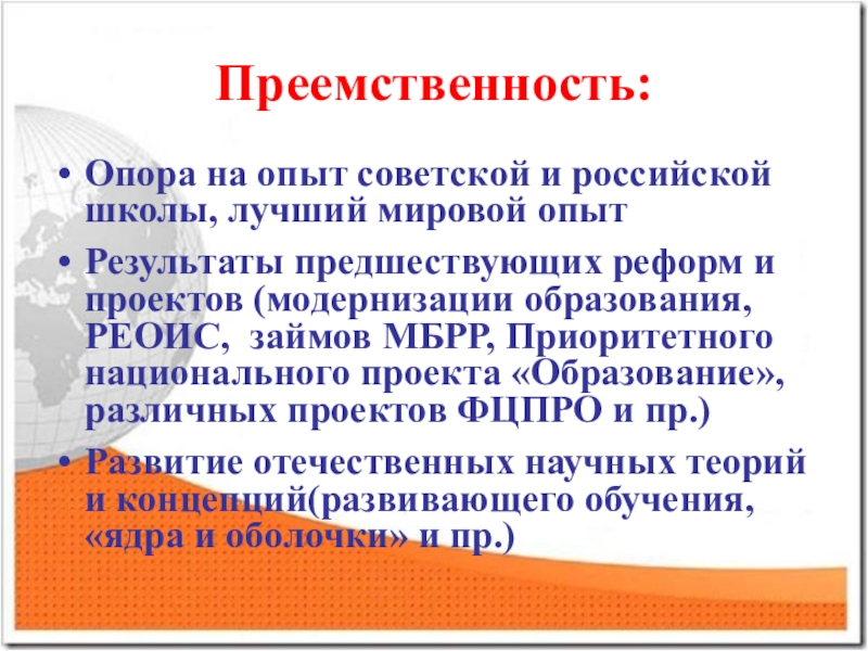 Опора на опыт советской и российской школы, лучший мировой опыт