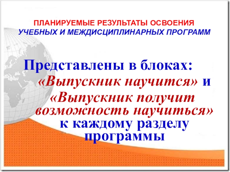 Слайд 14ПЛАНИРУЕМЫЕ РЕЗУЛЬТАТЫ ОСВОЕНИЯ ОСНОВНОЙ ОБРАЗОВАТЕЛЬНОЙ ПРОГРАММЫ