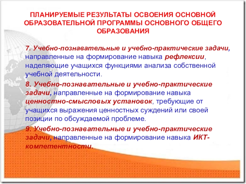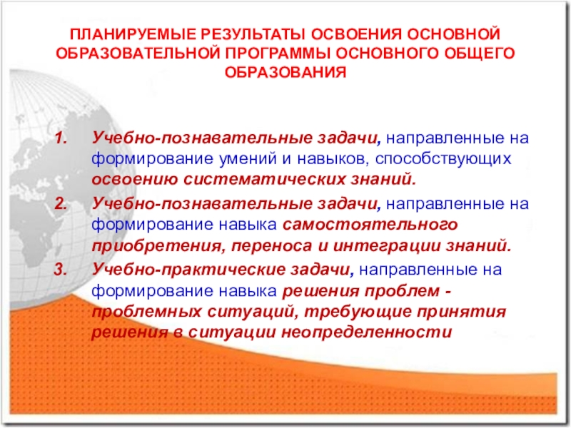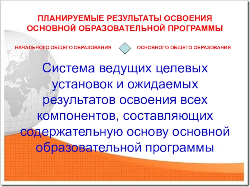 Слайд 18ПЛАНИРУЕМЫЕ РЕЗУЛЬТАТЫ ОСВОЕНИЯ ОСНОВНОЙ ОБРАЗОВАТЕЛЬНОЙ ПРОГРАММЫ ОСНОВНОГО ОБЩЕГО ОБРАЗОВАНИЯ