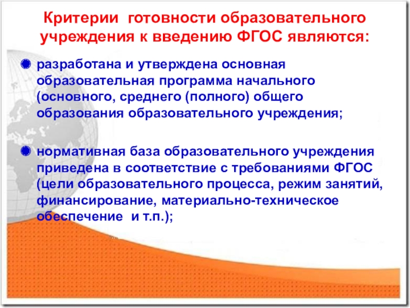 Критерии готовности образовательного учреждения к введению ФГОС являются: