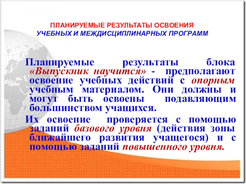 Слайд 13ПЛАНИРУЕМЫЕ РЕЗУЛЬТАТЫ ОСВОЕНИЯ ОСНОВНОЙ