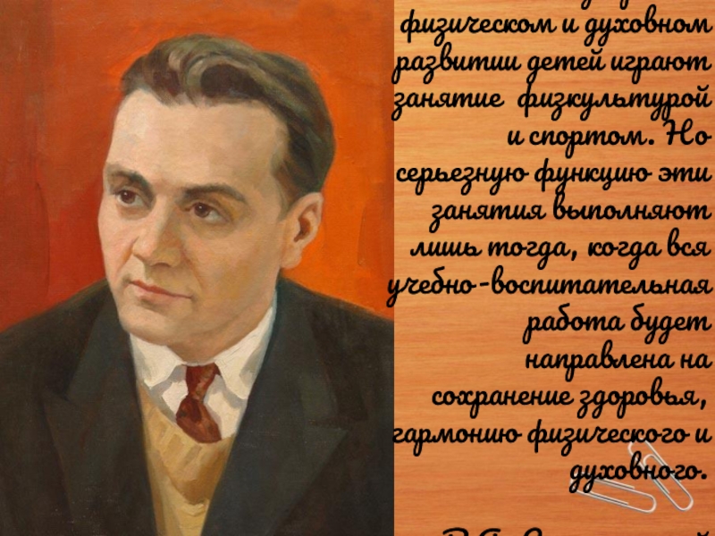 и спортом. Но серьезную функцию эти занятия выполняют лишь тогда, когда вся учебно-воспитательная работа будет направлена на сохранение здоровья, гармонию физического и духовного.