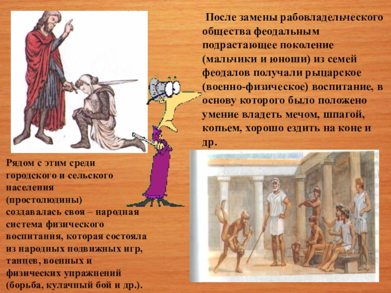 Слайд 6 После замены рабовладельческого общества феодальным подрастающее поколение (мальчики и юноши)