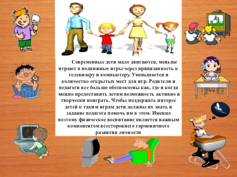 Слайд 10Современные дети мало двигаются, меньше играют в подвижные игры через привязанность
