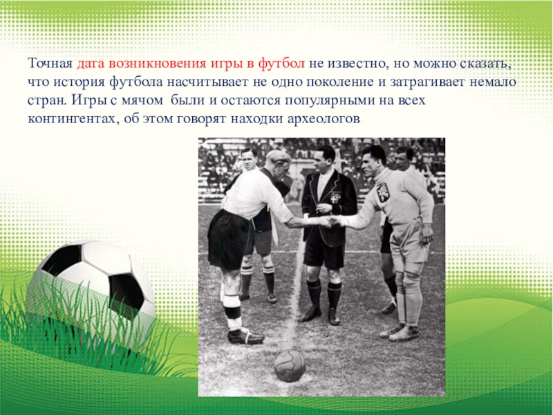 Слайд 5Точная дата возникновения игры в футбол не известно, но можно сказать,