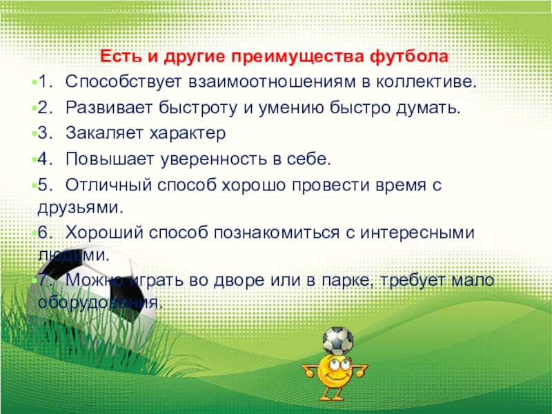 Слайд 14Есть и другие преимущества футбола