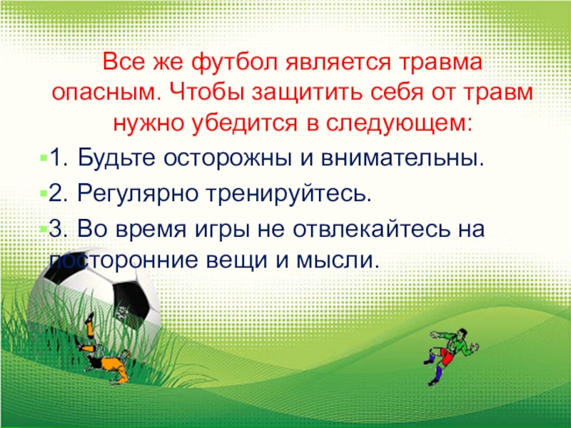 Слайд 15Все же футбол является травма опасным. Чтобы защитить себя от травм