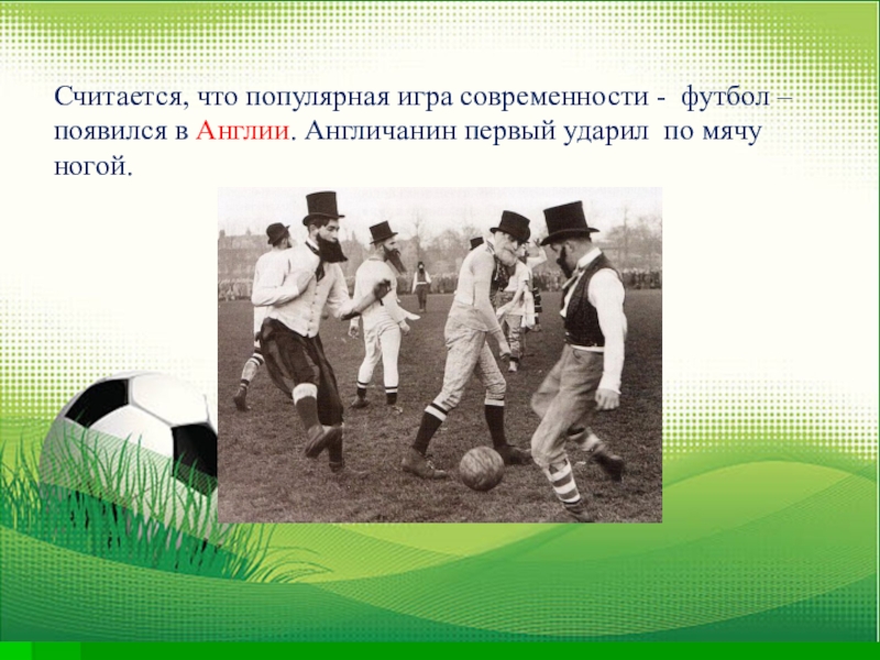 Слайд 6Считается, что популярная игра современности - футбол – появился в Англии.