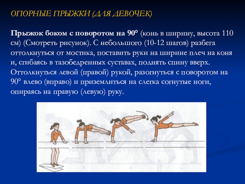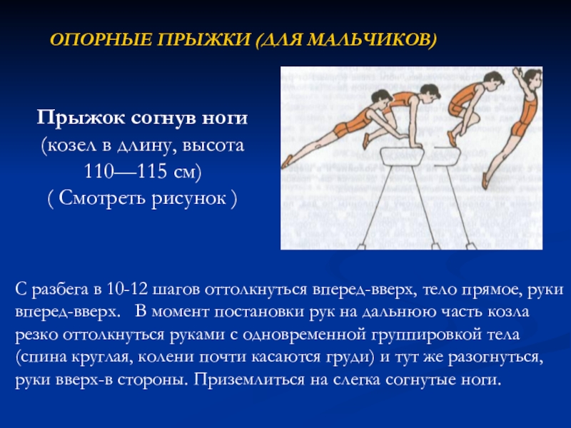 Слайд 19Выполняются с разбега толчком двумя ногами о гимнастический мостик и обязательно