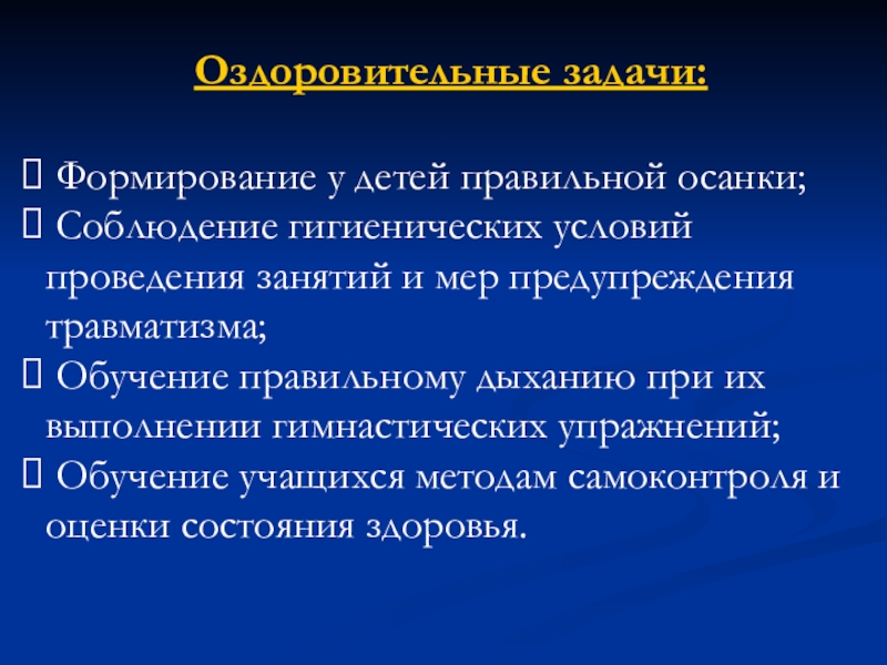 преодолении трудностей, эстетика движений и т. д. Оздоровительные и воспитательные задачи должны решаться в неразрывной связи с образовательными.