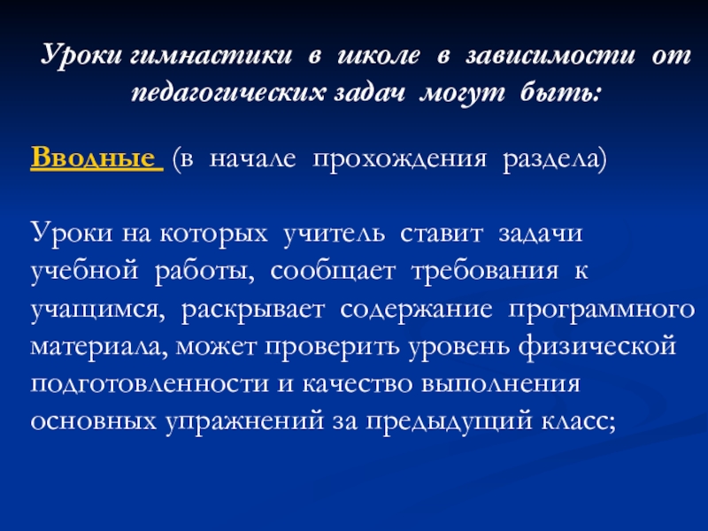 Слайд 12Уроки гимнастики в школе в зависимости от педагогических задач могут быть: