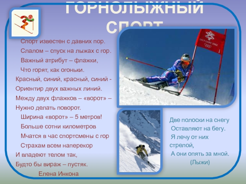 Слалом – спуск на лыжах с гор.