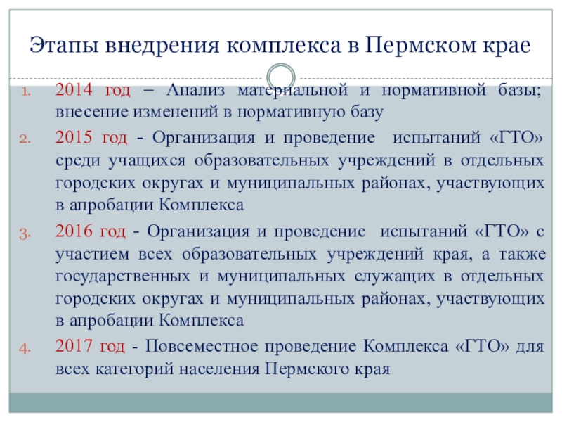 Этапы внедрения комплекса в Пермском крае