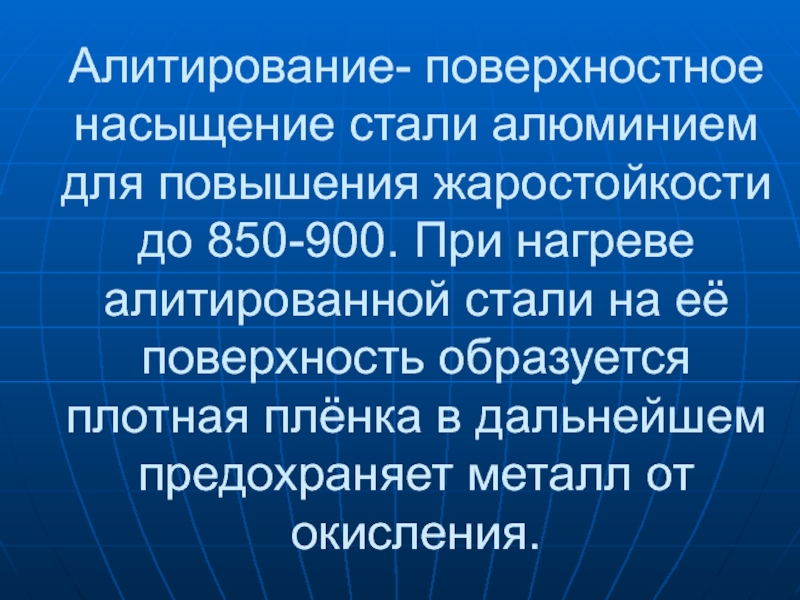 Слайд 15Алитирование- поверхностное насыщение стали алюминием для повышения жаростойкости до 850-900. При
