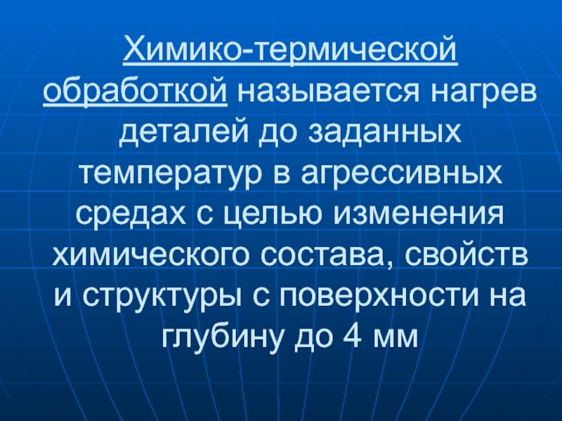 Слайд 2Химико-термической обработкой называется нагрев деталей до заданных температур в агрессивных средах